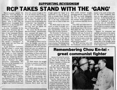 Support for revisionism and capitalist restoration is the essence of the RCP’s stand on China. In China, Marxism-Leninism has dealt revisionism a crushing blow. But RCP insists on standing on the wrong side of this struggle, giving aid and comfort to the revisionism of the “gang of four.”