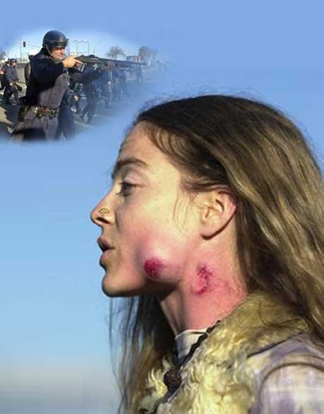 A protester, after she was hit by an Oakland police weapon during an antiwar protest in Oakland, Calif., Monday, April 7, 2003. Write us! Palestinian boys inspect the debris of their family house after it was demolished by Israeli bulldozers at Beit Hanoun town in the northern Gaza Strip, May 10, 2003. The Israeli army said the house belonged to a Hamas activist. Israel, awaiting U.S. Secretary of State Colin Powell on a new peace mission, will balk at easing its military grip on Palestinians until they rein in armed militants, political sources said on Saturday. REUTERS/Suhaib Salem |