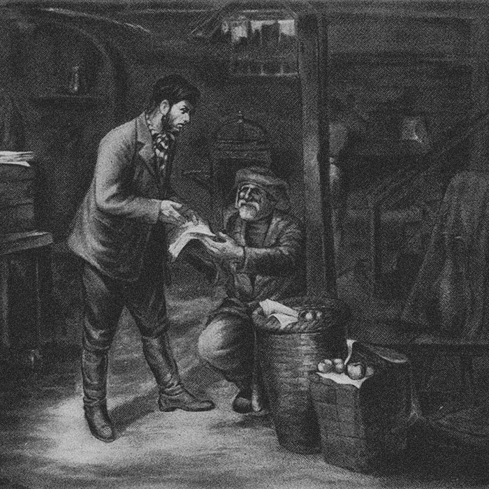 — Escutem, companheiros… Eu não sou falsificador e não fabrico dinheiro falso. Quero ajudá-los, sim, mas não da maneira que pensam. Eu não imprimo dinheiro. Eu imprimo jornais, proclamações e panfletos. Escrevo nelas porque vocês vivem tão mal e como isso pode ser transformado. Quero que vocês, junto com os operários, derrubem o czar e construam um governo nosso — para que possam dirigir suas próprias vidas e o seu próprio trabalho.
